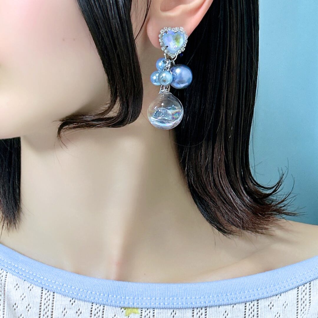 【ハートとお水入りガラスドーム ピアス/イヤリング】