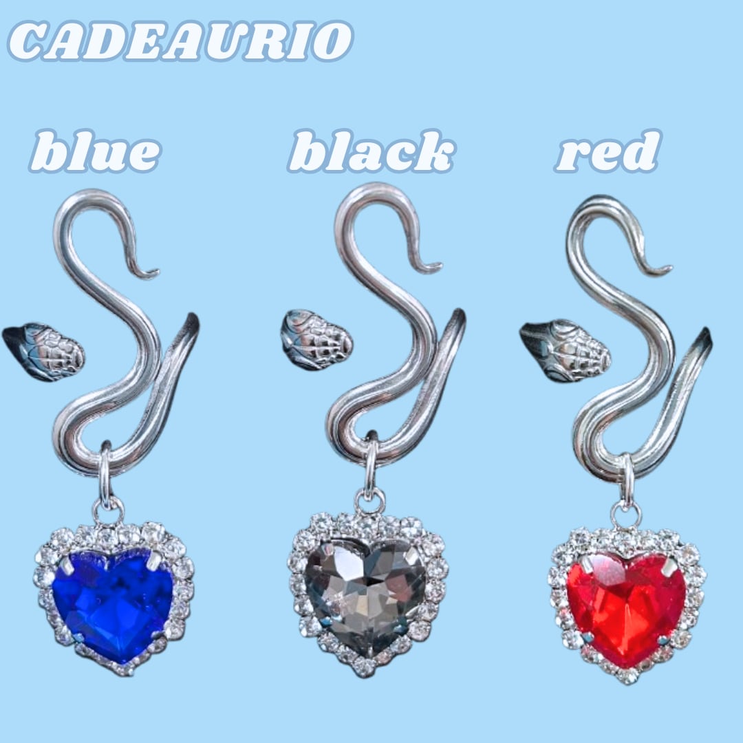 ステンレス製 ヘビモチーフ ハートビジュー フリーサイズリング 推し活 爬虫類