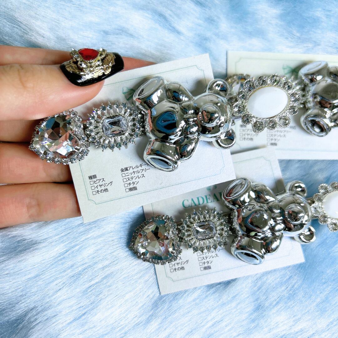 クリアとシルバーでキラキラモノトーンで大人可愛いくまのヘア飾り