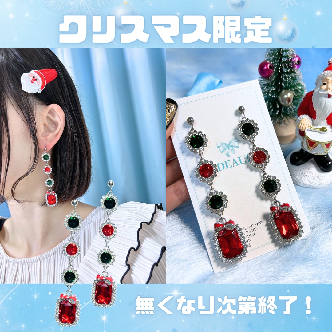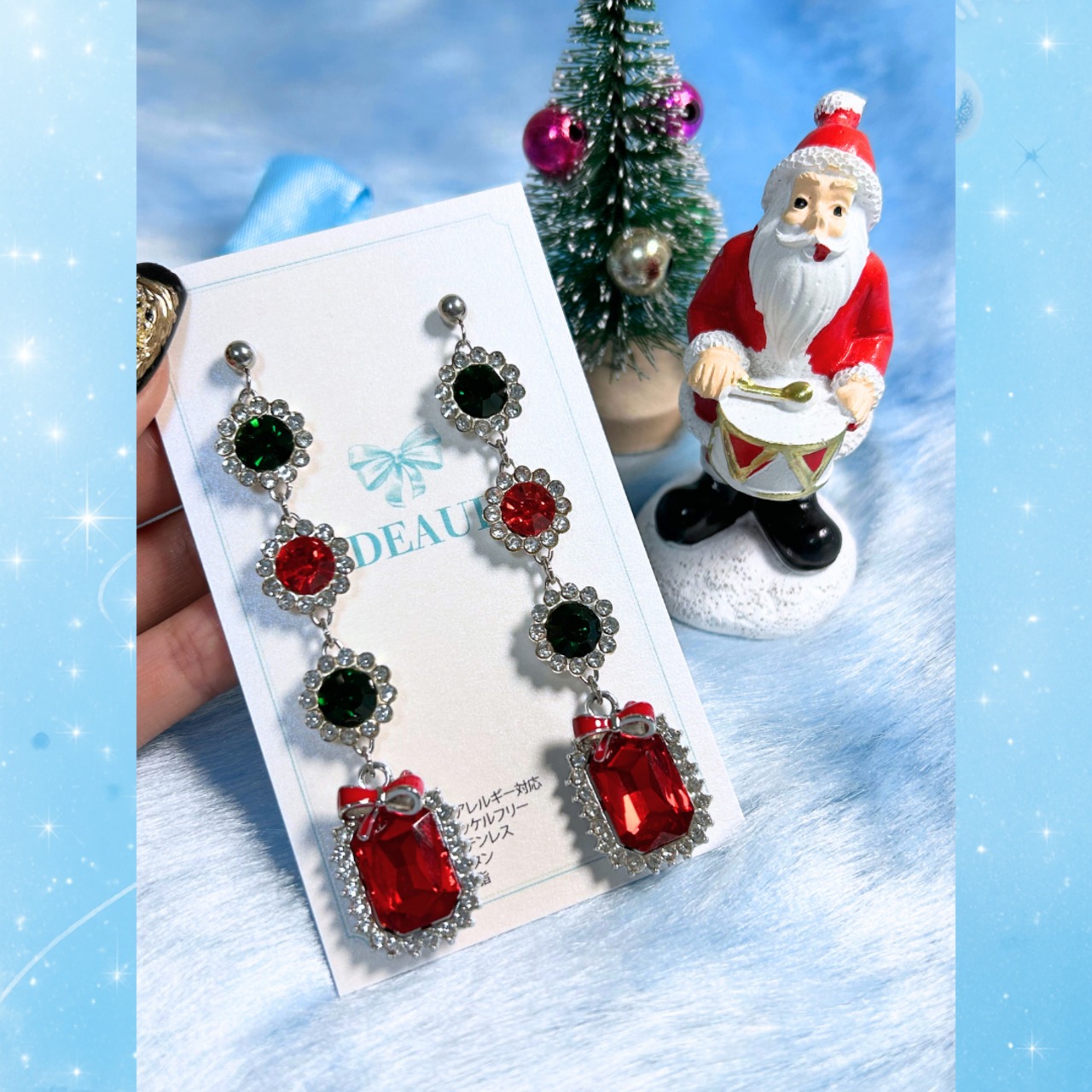 赤×緑のビジューがきらめく、クリスマスツリーのようなアクセサリー✨