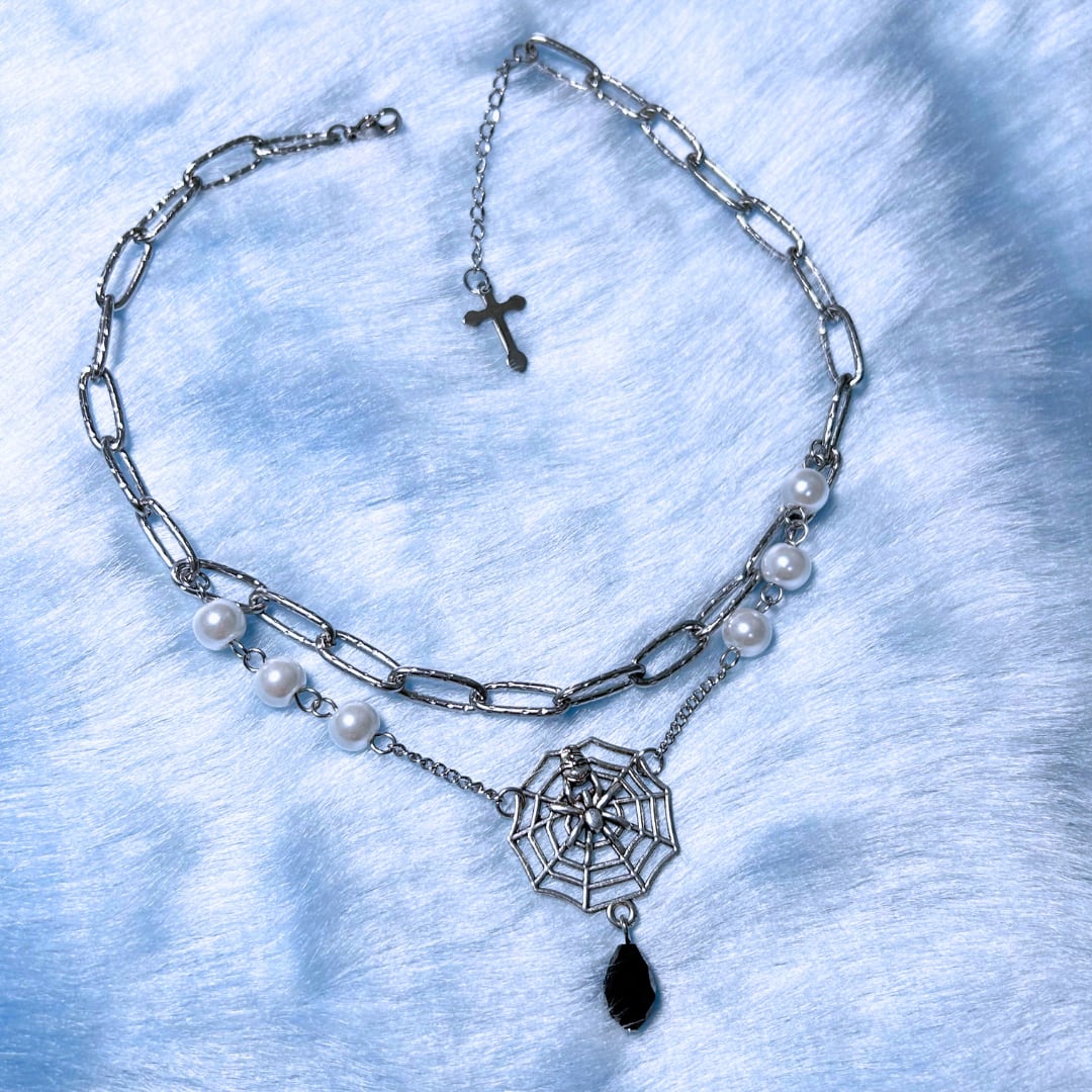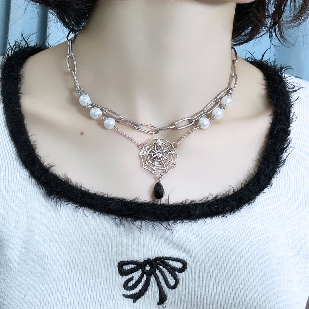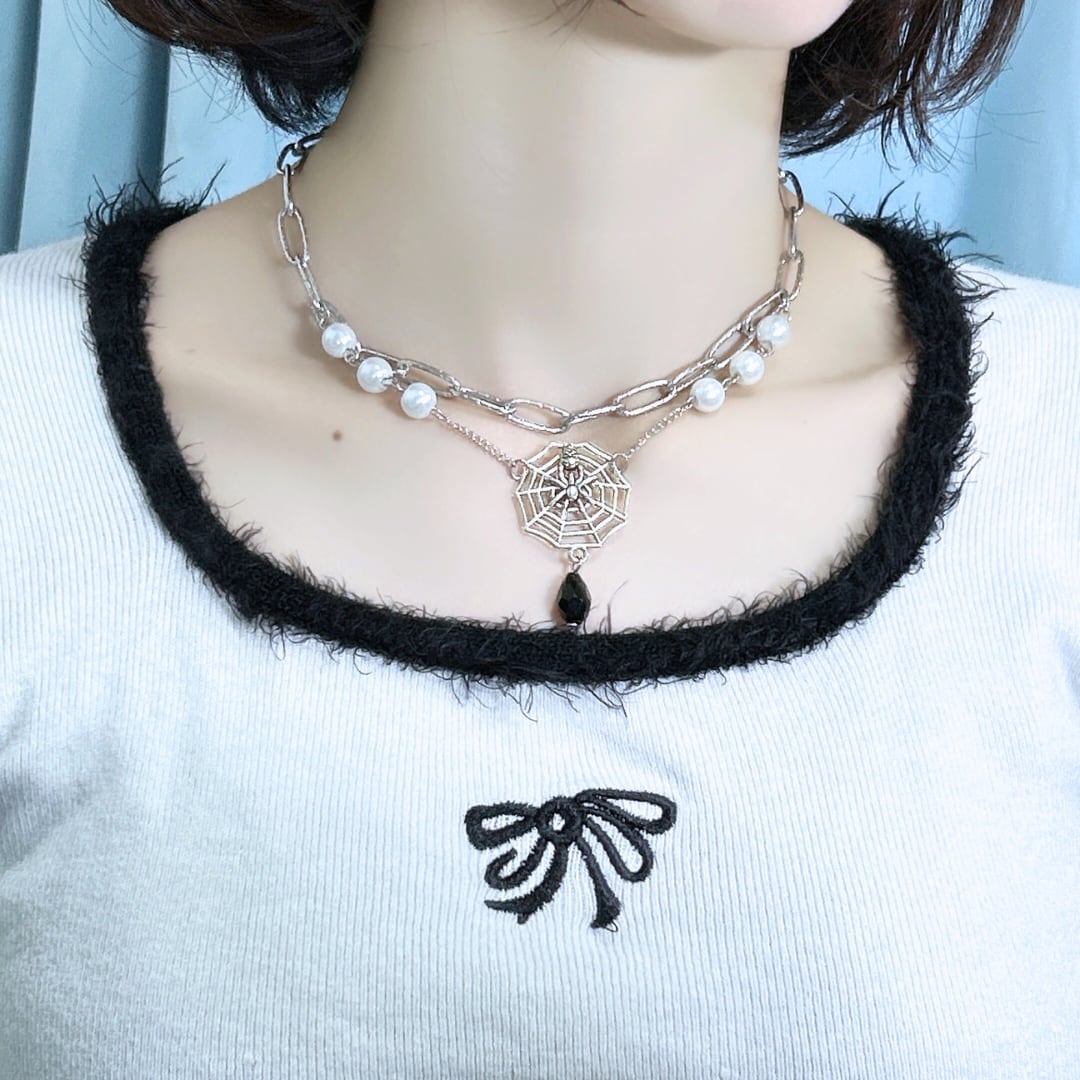 クールな蜘蛛モチーフにパールビーズをチョイス。