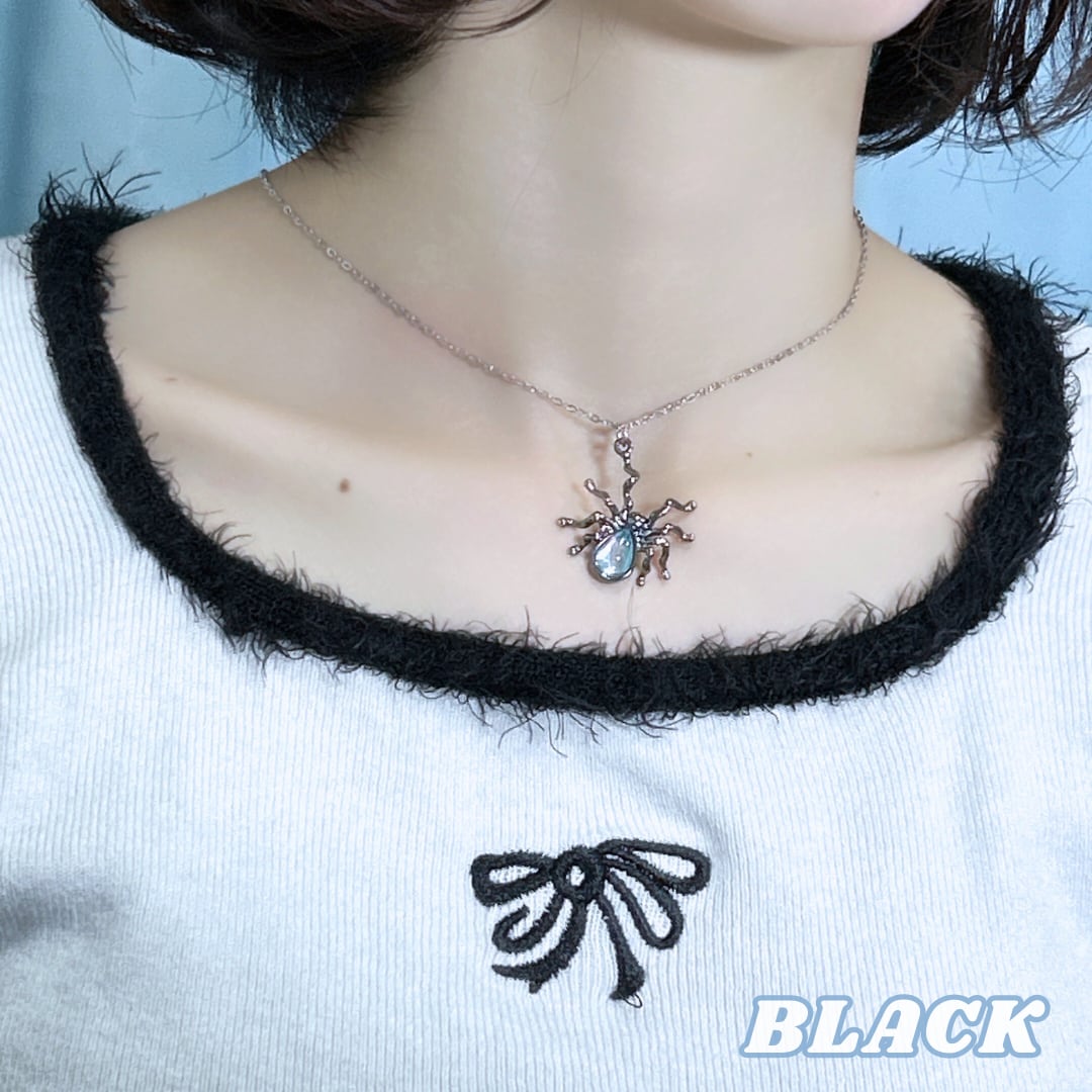 首元にそっと降りてきた、小さな蜘蛛。