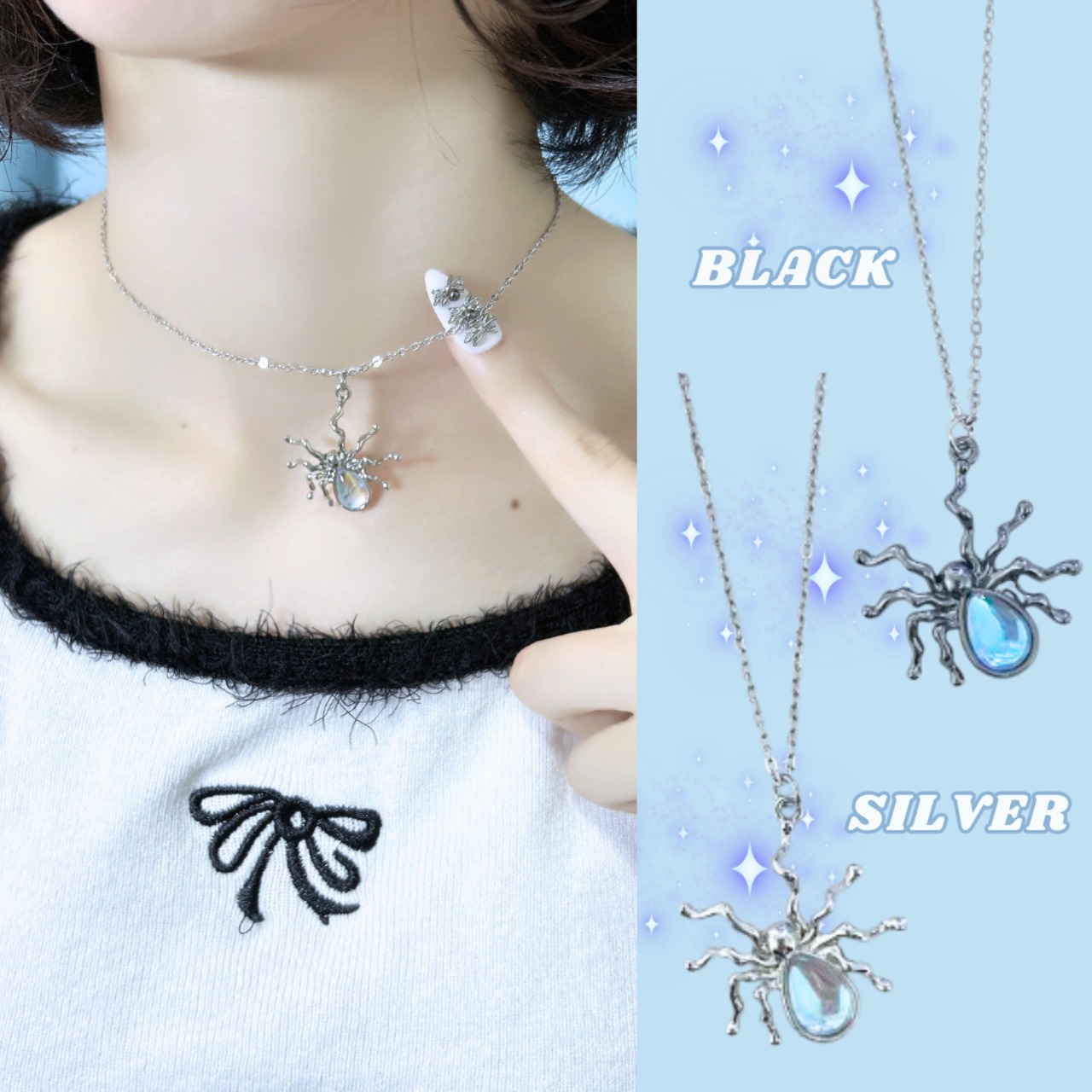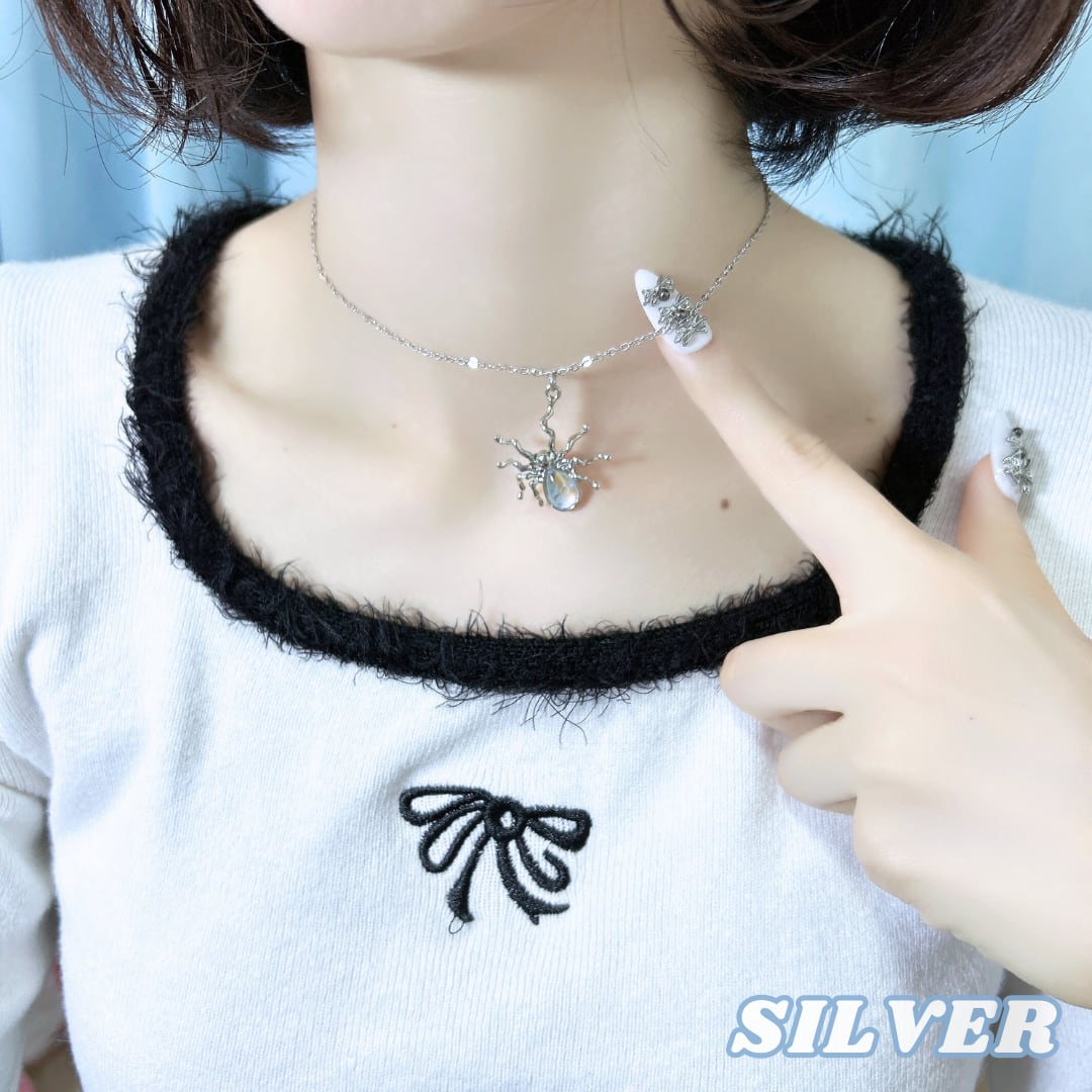 ステンレス製 ネックレス ワンポイント 蜘蛛