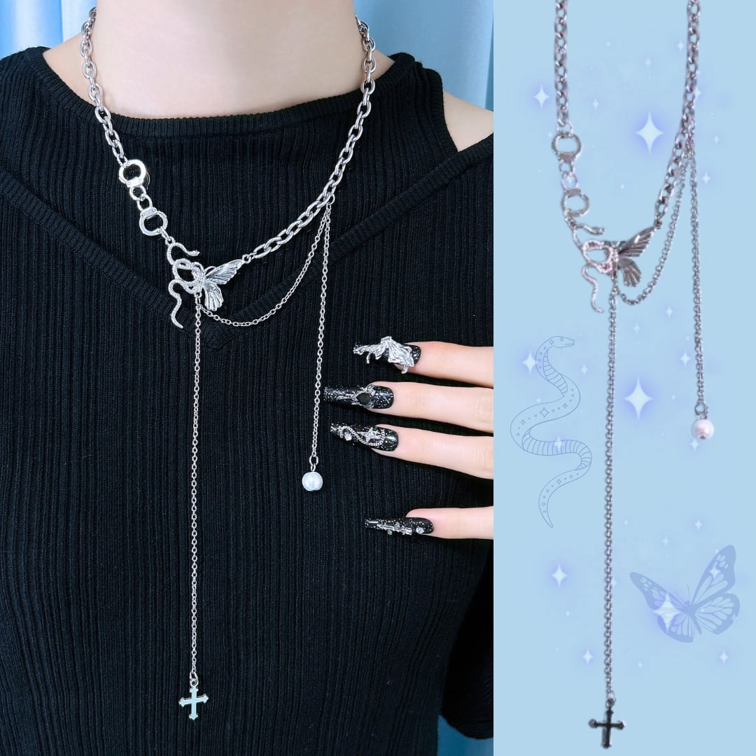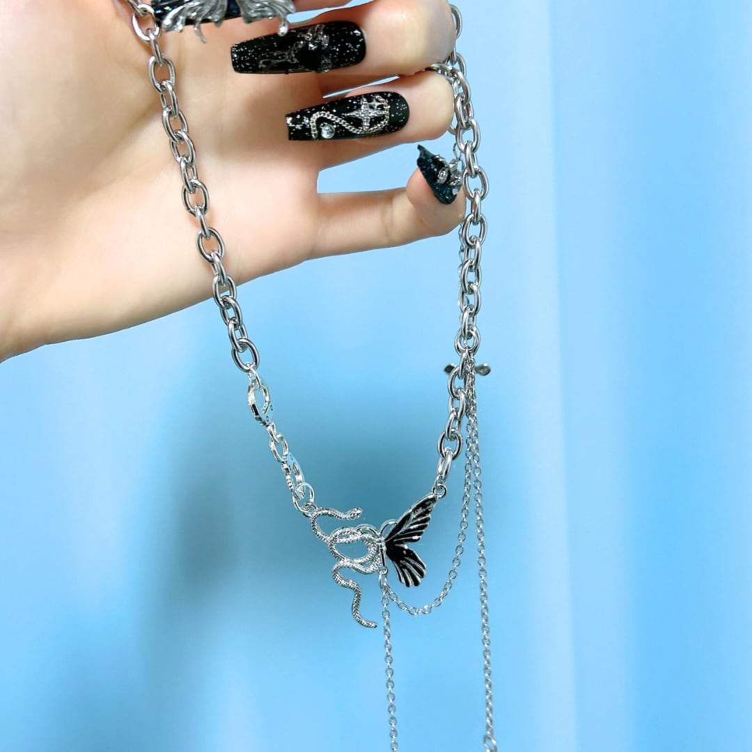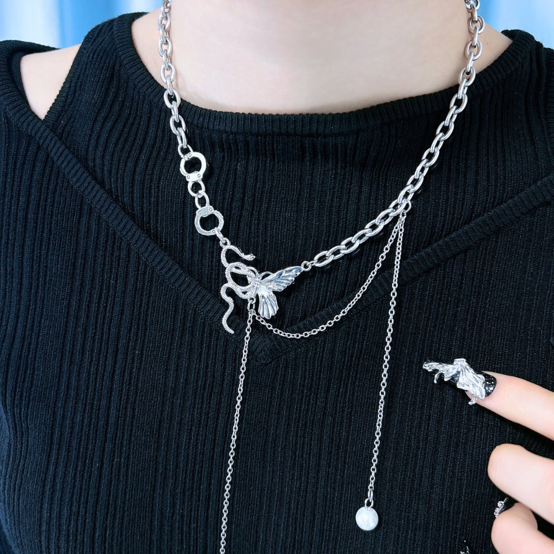 パールと蝶々、蛇の組み合わせが上品さとモードさを