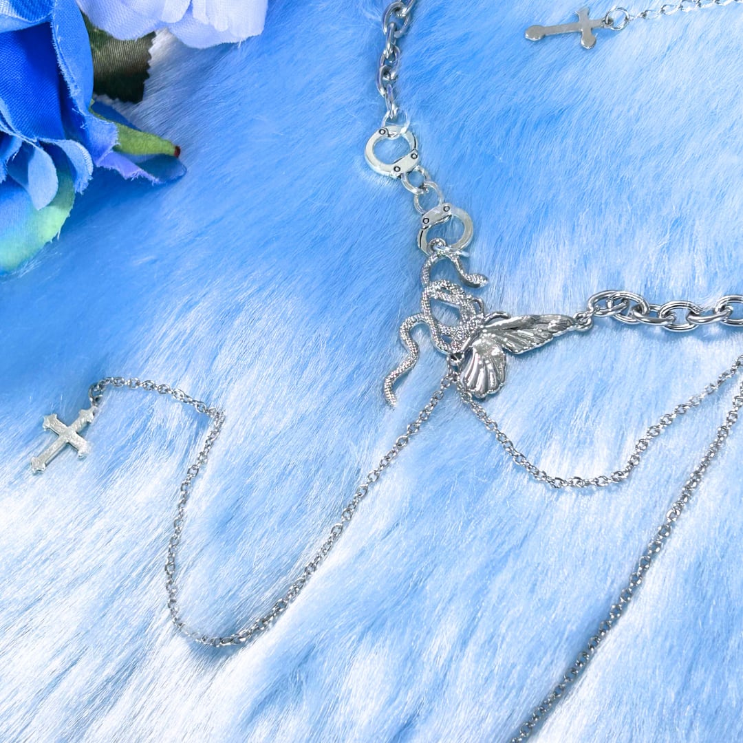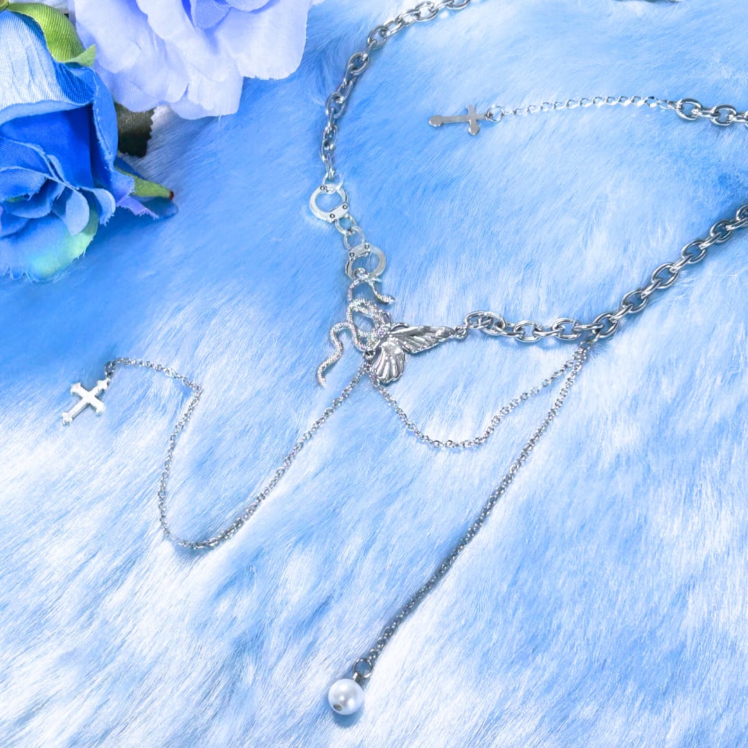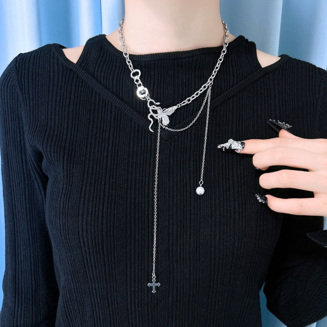 パールと蝶々、蛇の組み合わせが上品さとモードさを
