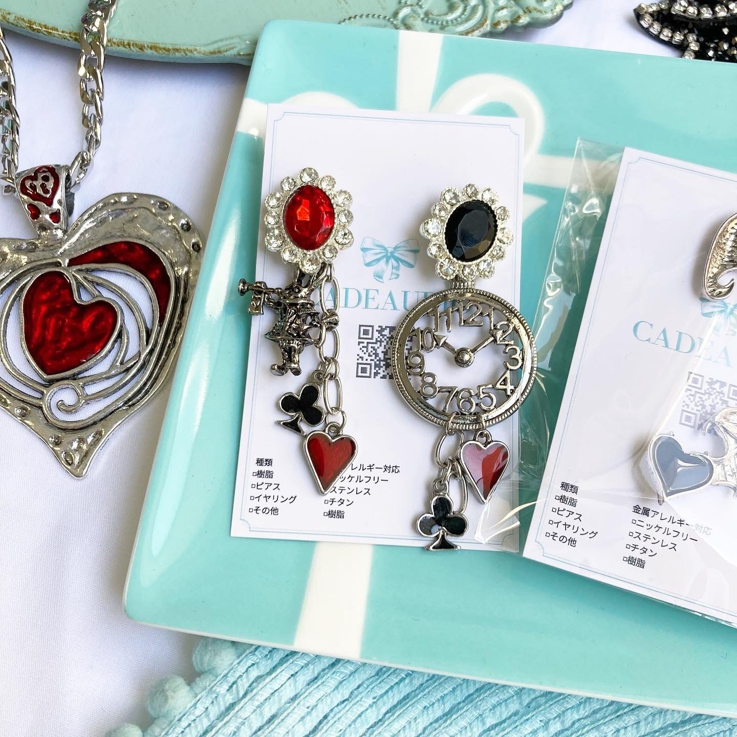 不思議な国のアリス トランプ ビジュー ピアス イヤリング 赤 黒